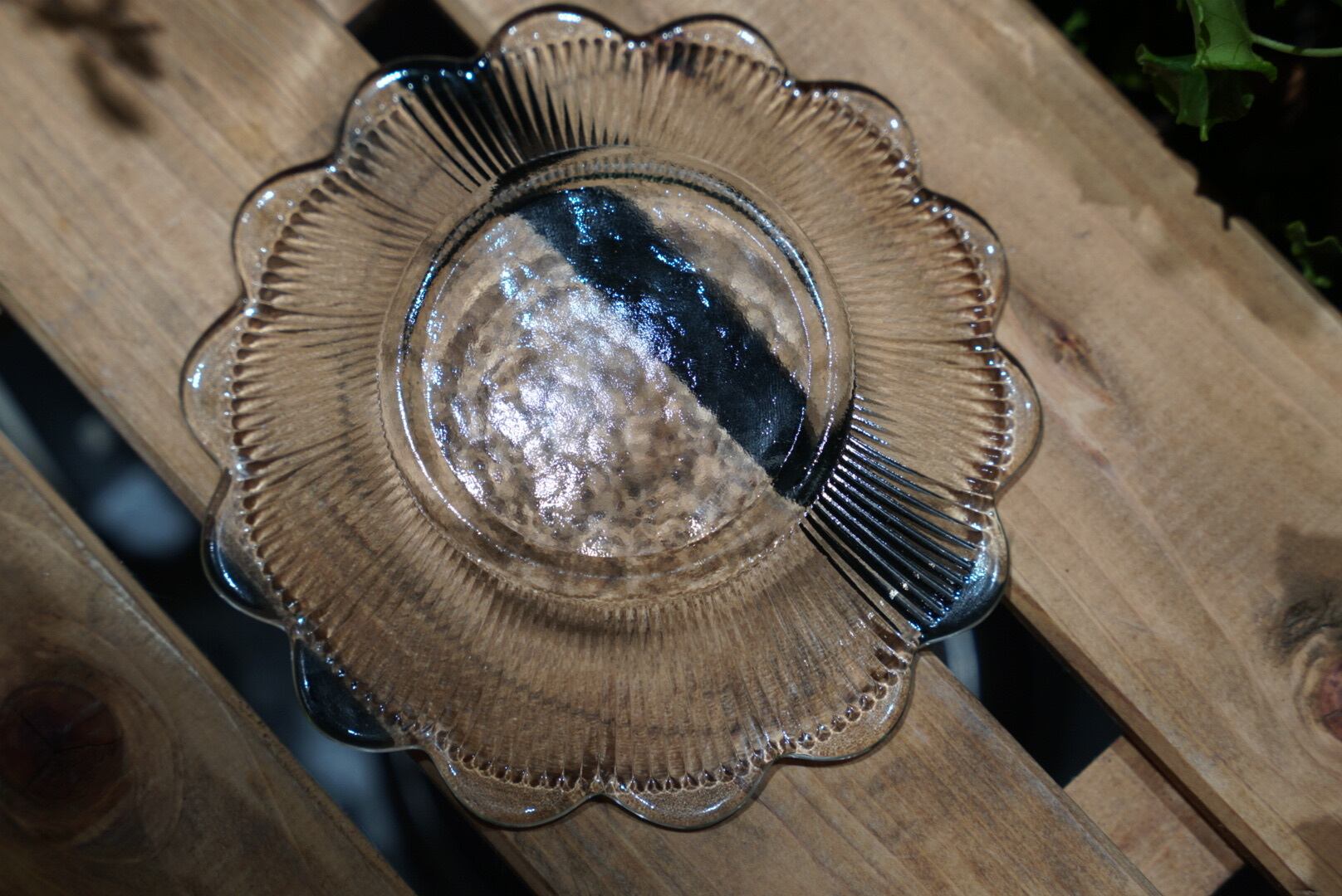 光を集める硝子の花びら 昭和プレスガラスのお皿